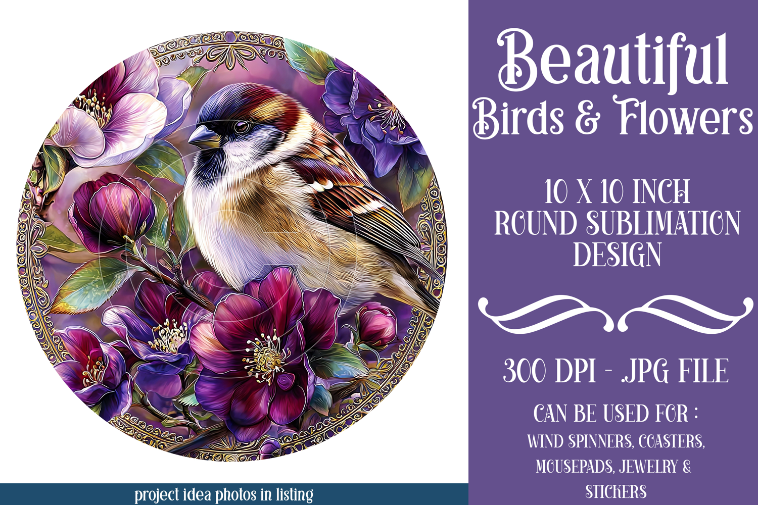 Birds & Flowers Round Design, 10x10 Round Sublimation, d39 example image 1