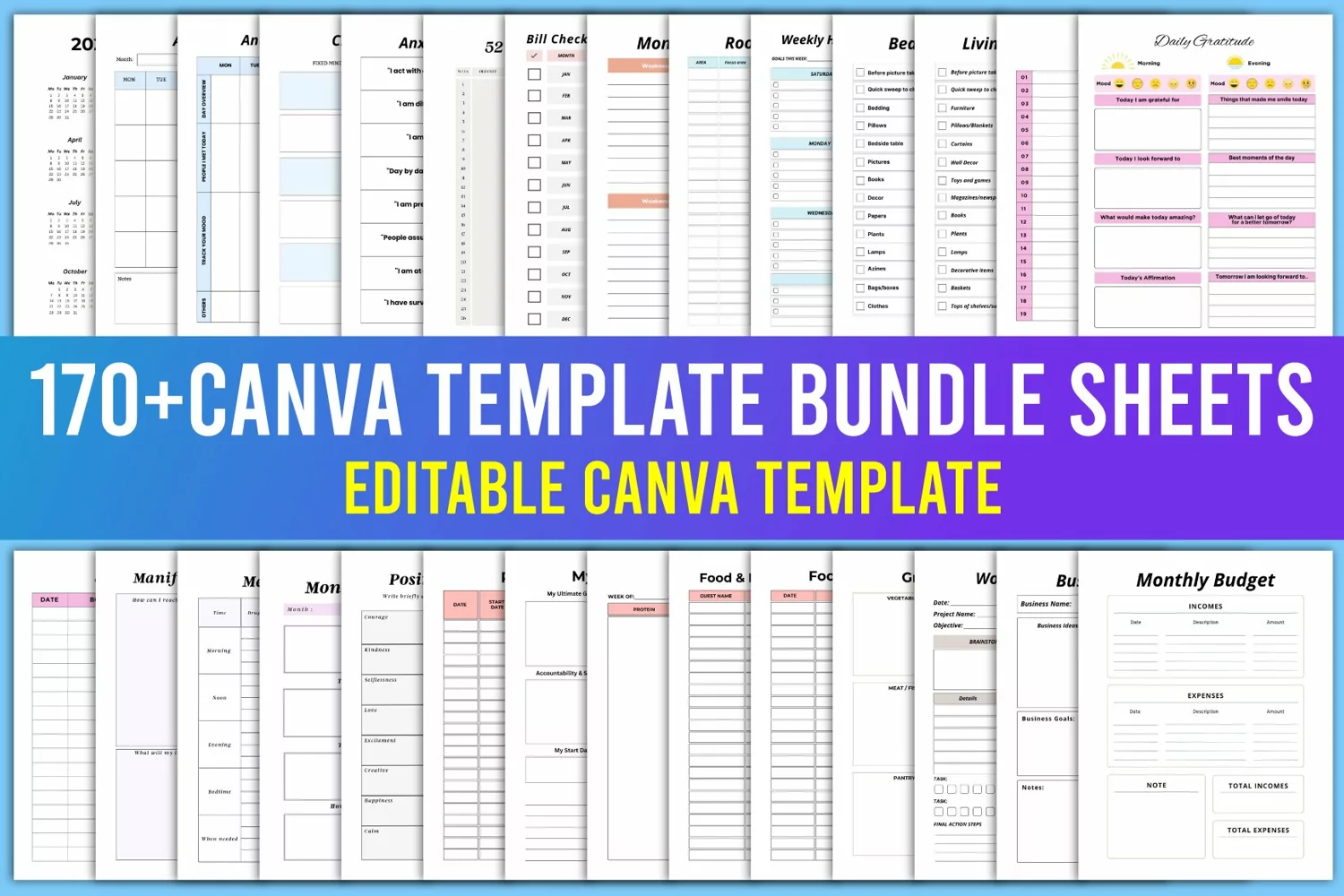 Unlock boundless creativity with the Editable 170+ Canva Template Bundle Sheets. Easily customizable using a free Canva account, this bundle offers high-quality print-ready PDF files and JPEG files with editable Canva links.