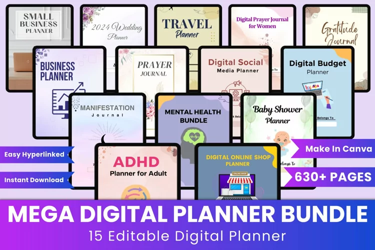 Mega Digital Planner Bundle Canva Interior, You will get high quality Mega Digital Planner Bundle for your custom use,