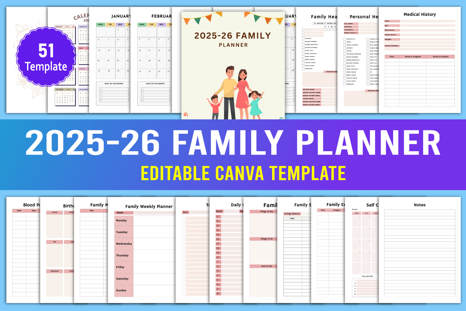 2025-26 Family Planner Canva Interior, You will get high quality 2025-26 Family Planner for your custom use,