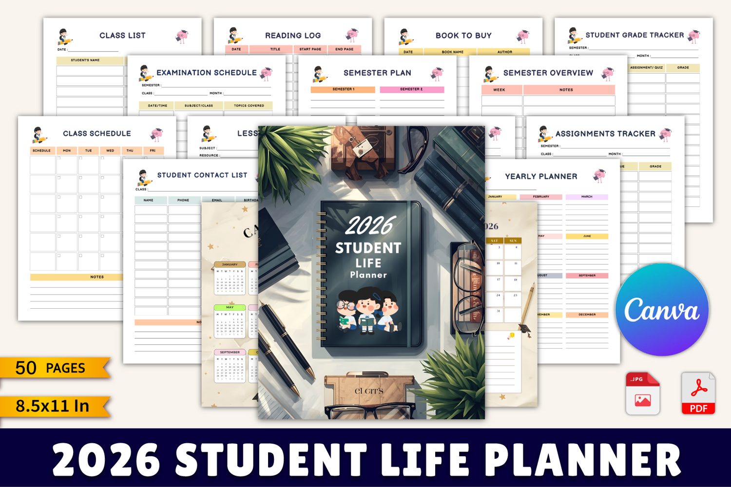 Stay organized, motivated, and ahead of schedule all year long! The 2026 Student Life Planner is designed to help students balance academic goals, growth, and daily routines. With structured pages for lessons, assignments, exams, and self-reflection, it’s the ultimate tool to support productivity and success throughout the school year.