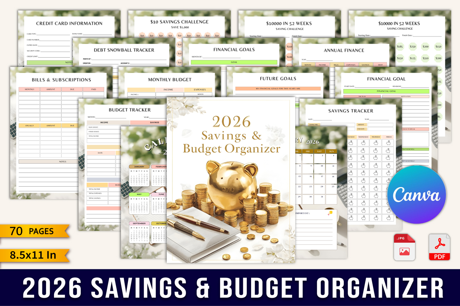 Stay in control of your finances all year long with the 2026 Savings & Budget Organizer — your ultimate money management companion! This planner helps you track income, expenses, savings goals, debt payoff, and financial progress month by month. Perfect for individuals, families, or business owners who want to achieve their financial goals with confidence and clarity.