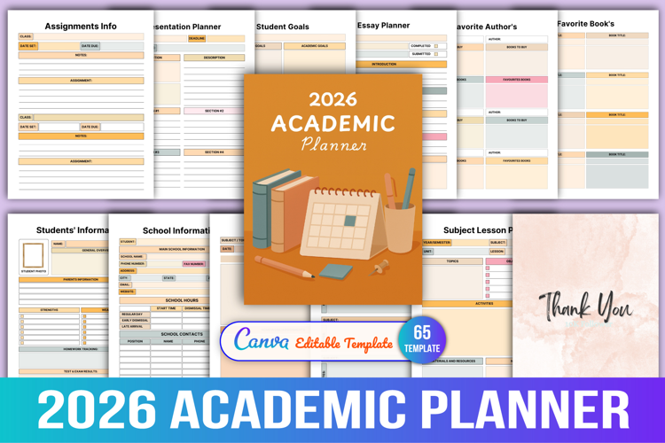 Stay organized, motivated, and on track all year with this comprehensive 2026 Academic Planner. Designed for students and educators, it features everything you need to manage your academic life, track goals, monitor progress, and plan for success.