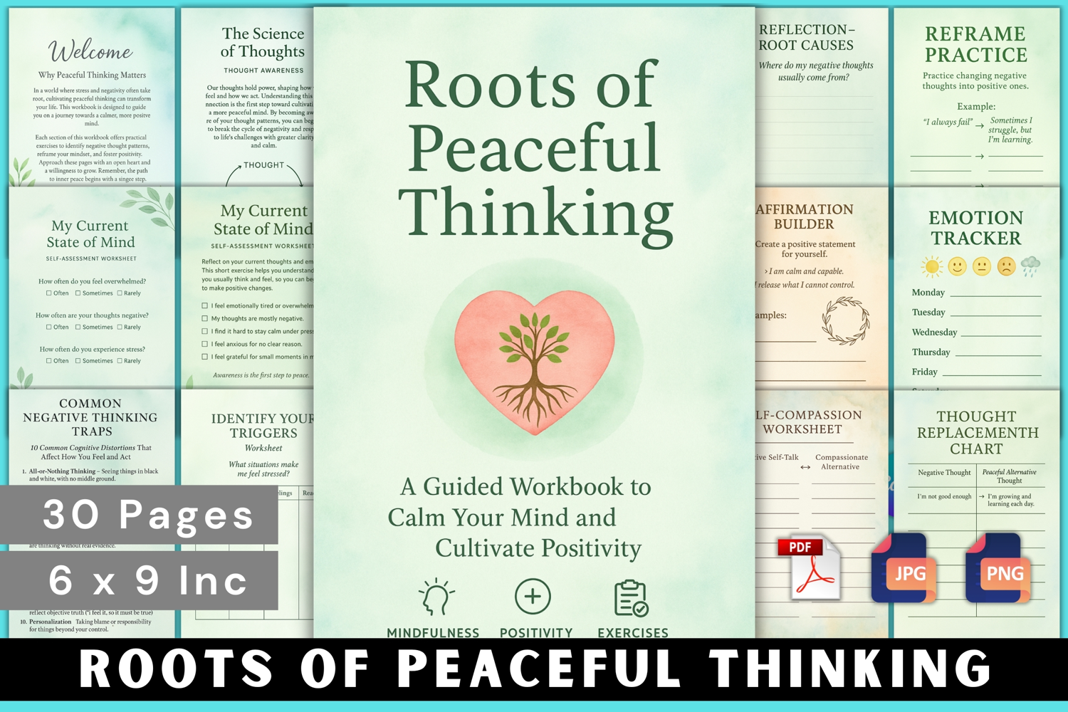 Cultivate calm, clarity, and inner strength with Roots of Peaceful Thinking — a reflective guided journal designed to help you slow down, quiet your thoughts, and reconnect with your inner peace. Perfect for mindfulness lovers, self-growth seekers, and anyone wishing to create a more balanced mindset.
