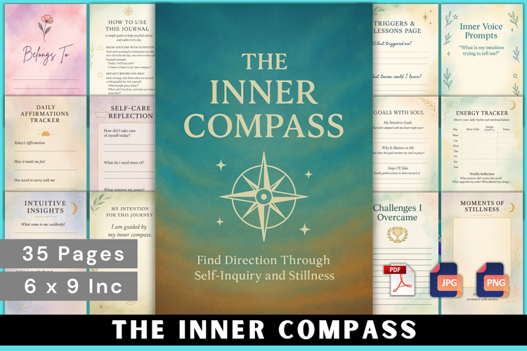 Find your way back to balance, mindfulness, and peace with The Inner Compass — a beautifully designed printable planner crafted to help you reflect, grow, and realign your mental, emotional, and spiritual wellbeing. Through guided self-care prompts and planning pages, this workbook empowers you to take charge of your wellness journey.