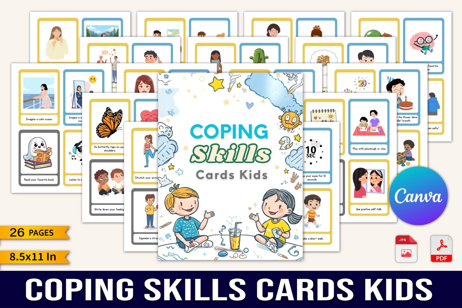 Help children understand and manage their emotions with this fun and calming set of Coping Skills Cards for Kids. Designed with simple, kid-friendly activities, this planner helps children build emotional resilience, practice mindfulness, and develop healthy coping habits. Perfect for parents, teachers, therapists, and counselors who want an easy, engaging way to support kids’ emotional well-being.