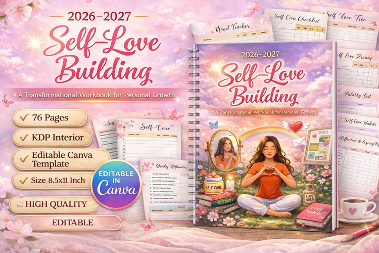 The Self-Love Building Planner (2026–2027) is a thoughtfully designed workbook that helps you nurture self-care, build positive habits, and grow emotionally and mentally. It combines structured planning with guided self-reflection exercises to support growth and daily well-being.