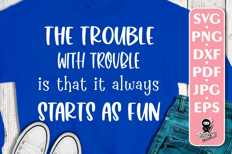 Funny Quote Svg Sassy Quote Svg Sarcasm Svg Funny Printable Cutter File Sarcastic Quote Svg Humor Quote Svg The Trouble With Trouble Is That It Always Starts