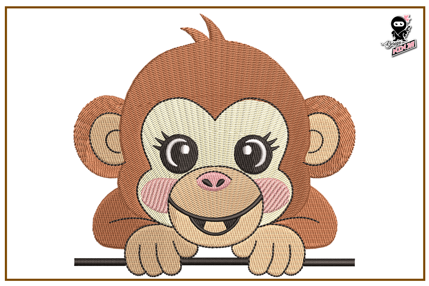 Peeking Baby Monkey | Cute Animal Embroidery Design example image 1