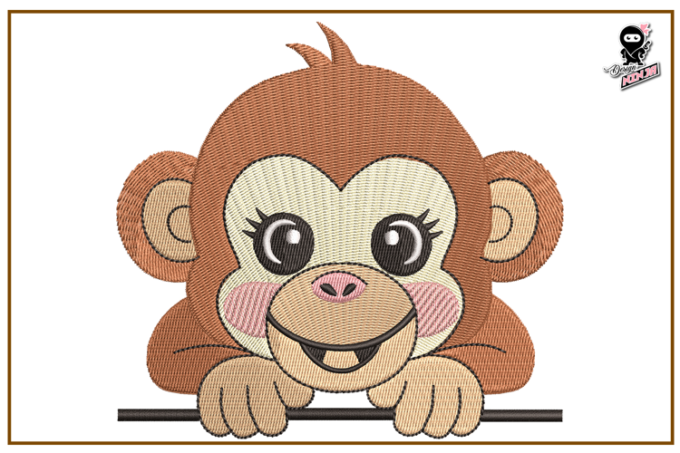 Peeking Baby Monkey | Cute Animal Embroidery Design