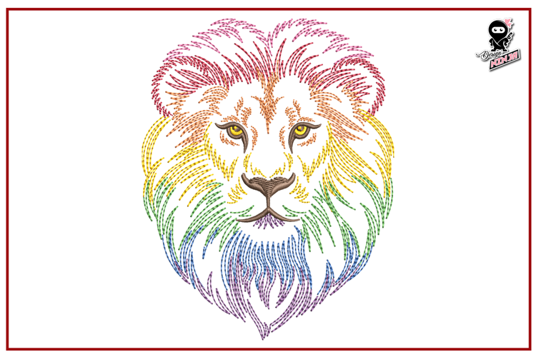 Rainbow Colors Lion Machine Embroidery Design example image 1