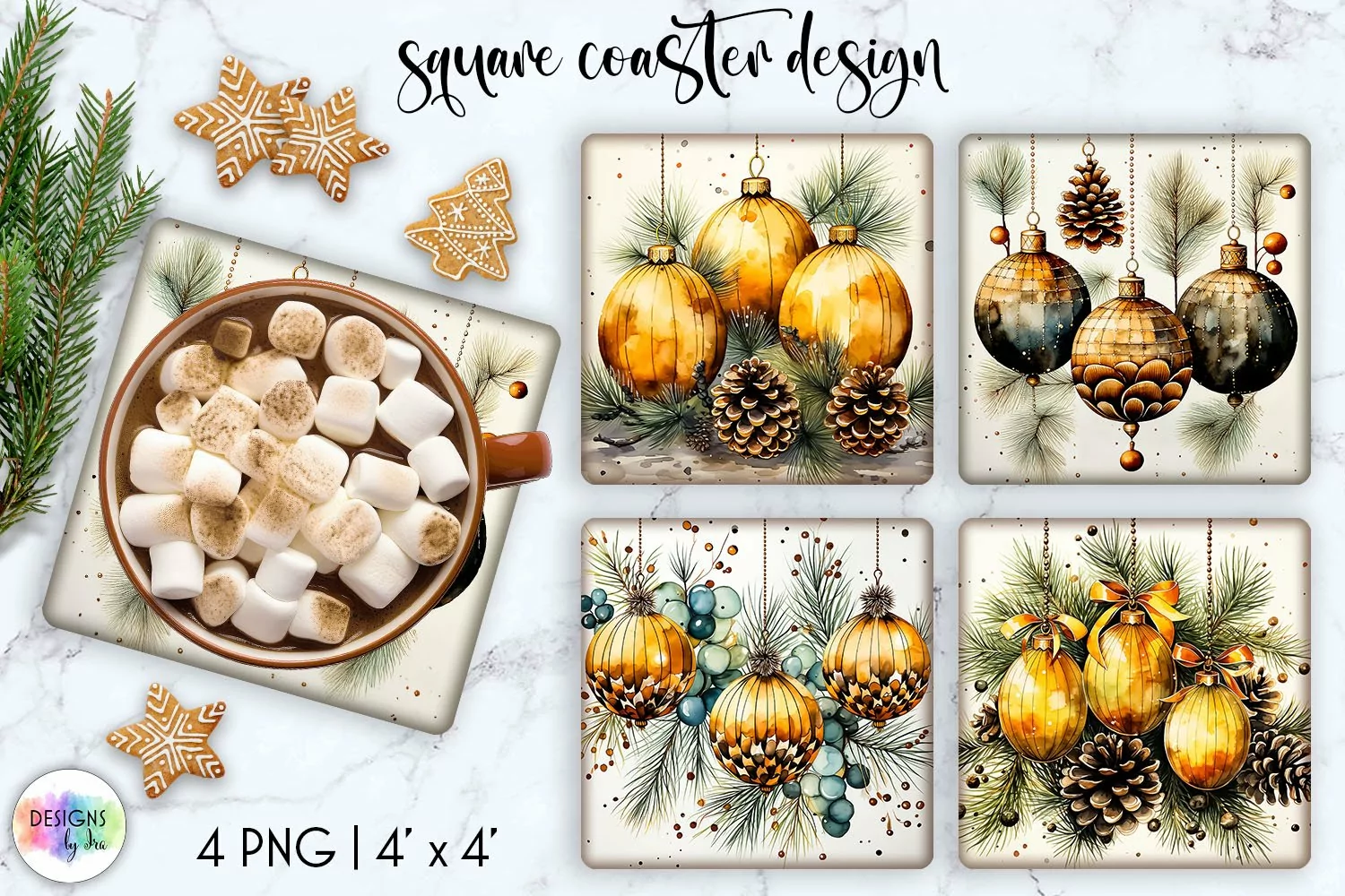 Watercolour Square Coasters | Christmas Ornaments