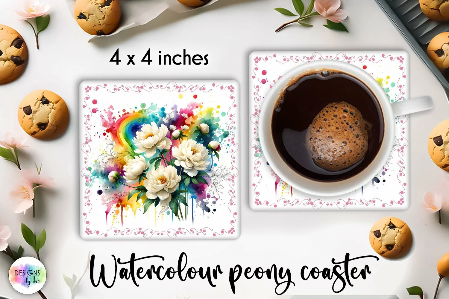 Watercolour Peonies Coaster Print | Peony Flowers PNG example image 1