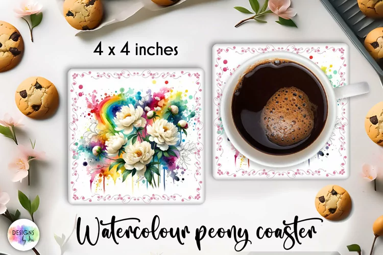 WATERCOLOUR PEONIES COASTER DESIGN.