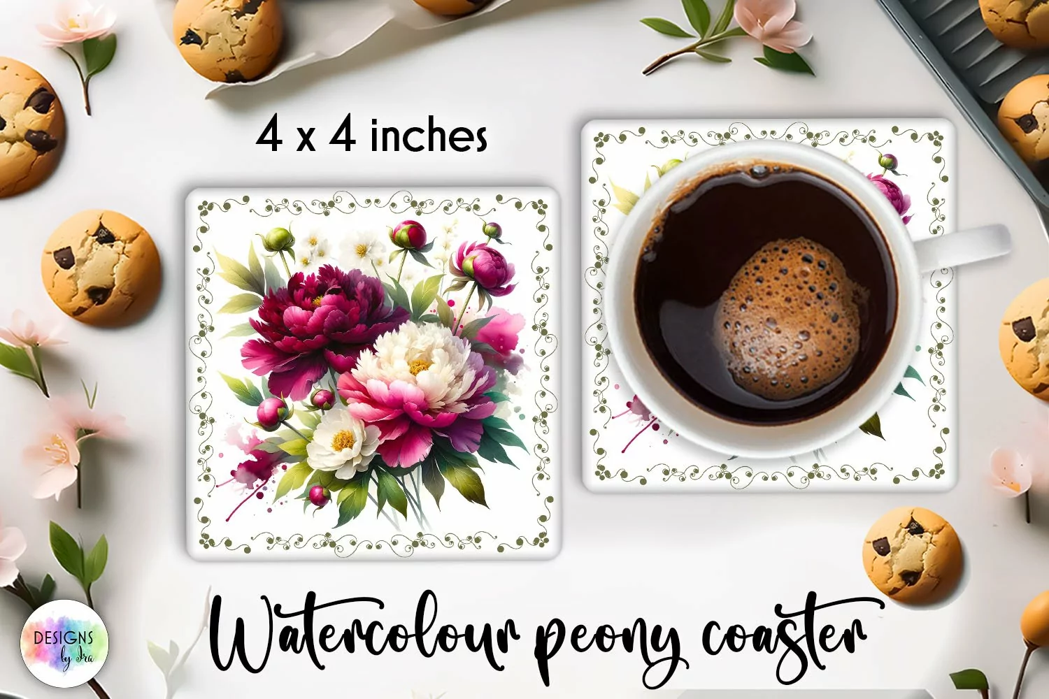 Watercolour Peonies Coaster Print | Peony Flowers PNG example image 1