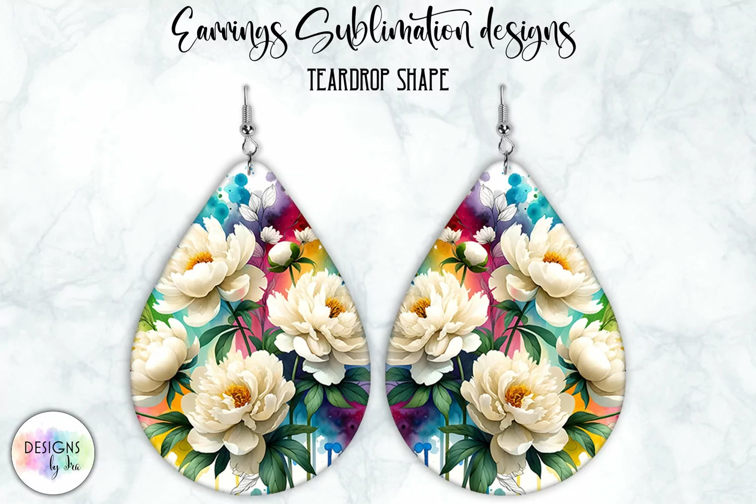 Peony Earrings Sublimation | Watercolour Peonies | Teardrop