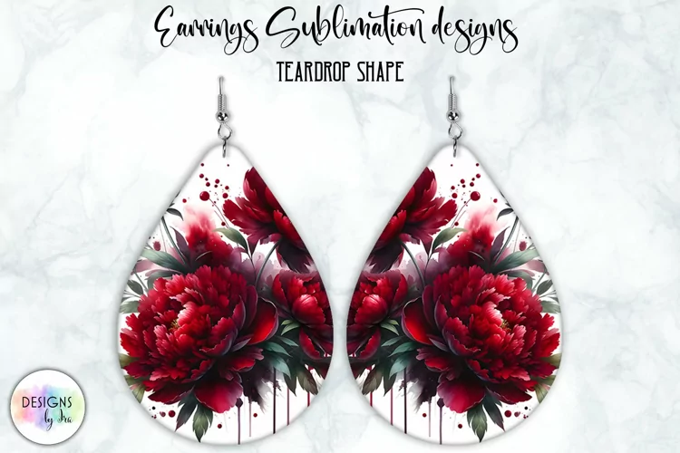 Peony Earrings Sublimation | Watercolour Peonies | Teardrop