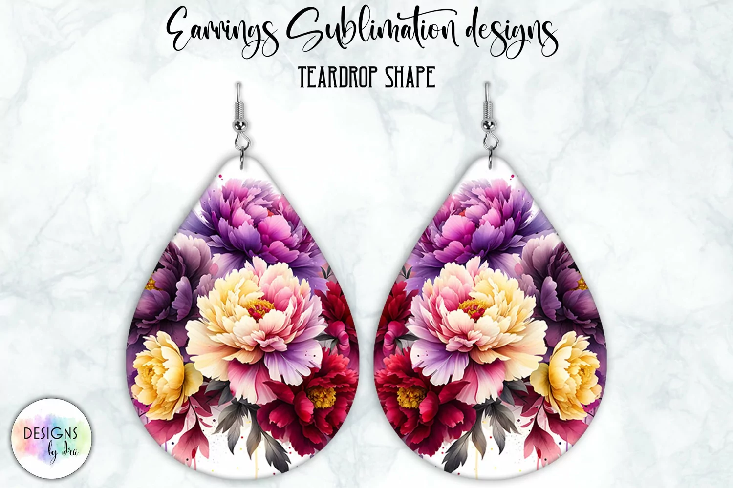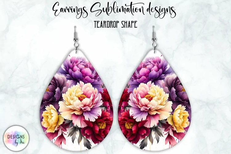 Peony Earrings Sublimation | Watercolour Peonies | Teardrop