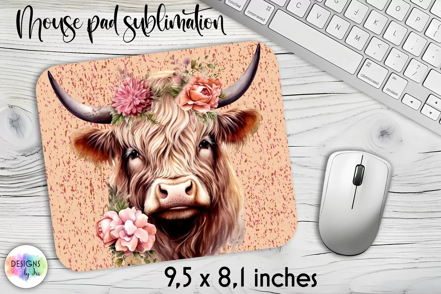 Mouse Pad Template Highland Cow Mouse Pad Vintage Mouse Pad Cute Cow With Flowers Cow Mouse Pad Heifer Mouse Pad Sublimation Distressed Mouse Pad Floral Heifer Illustration Retro Heifer Illustration Floral Retro Mouse Pad