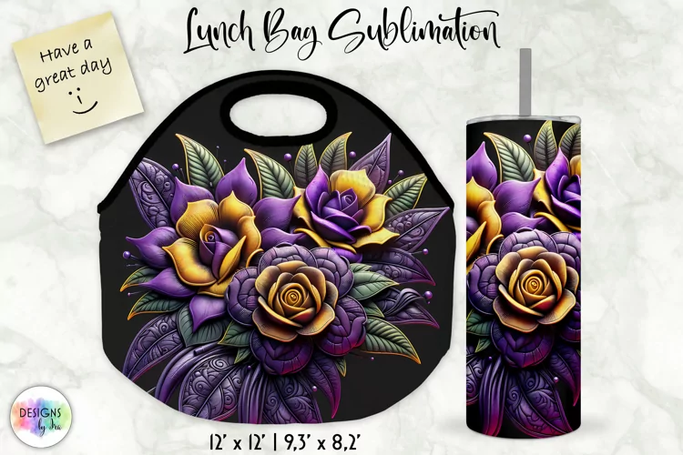 LUNCH BAG SUBLIMATION + 20 oz TUMBLER WRAP SET.