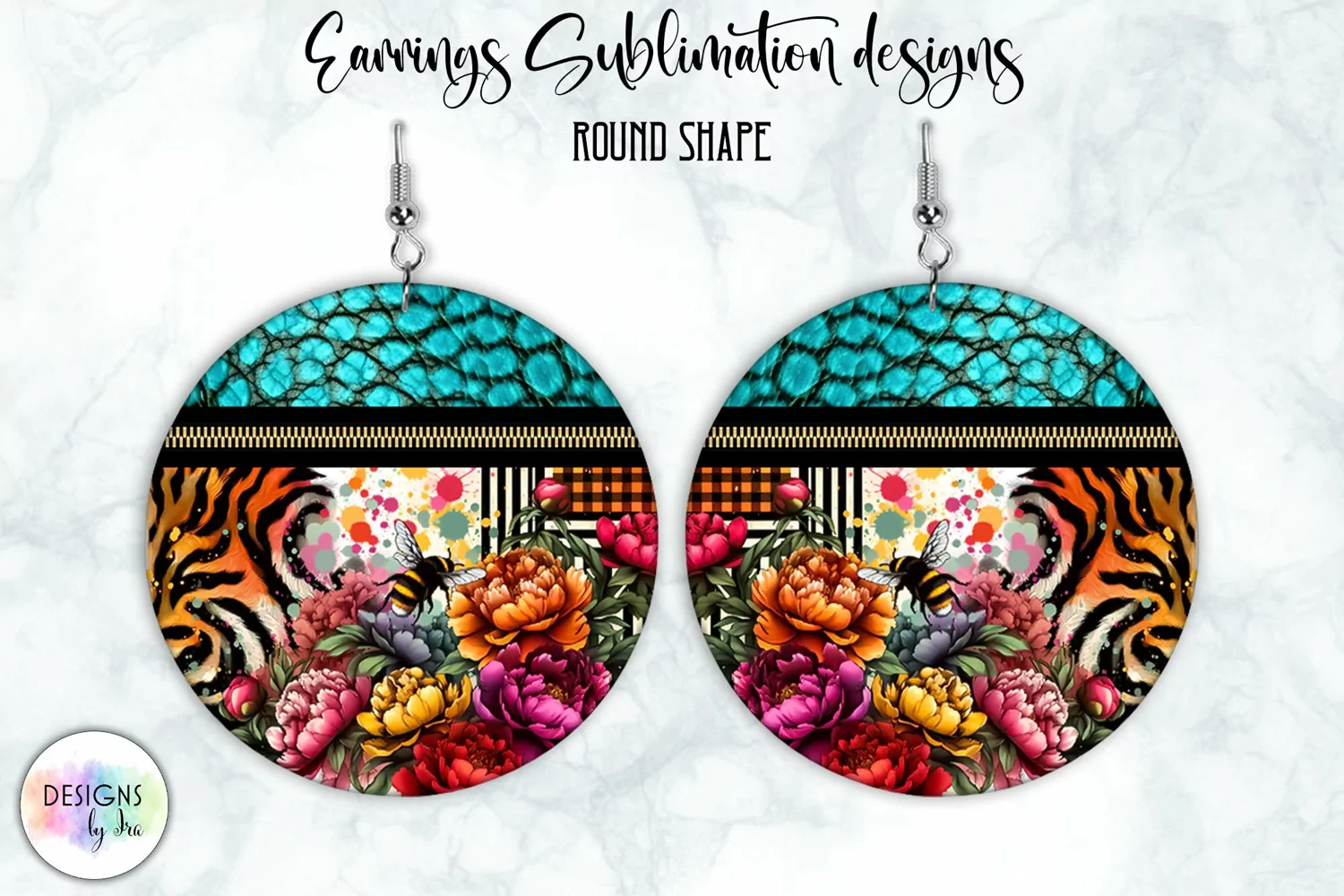 Similar Design Products to Peony and Sunflowers Earrings Sublimation | Round Earrings