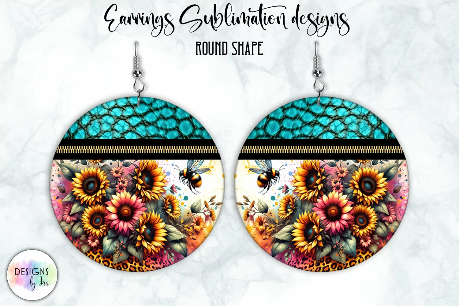 Peony and Sunflowers Earrings Sublimation | Round Earrings
