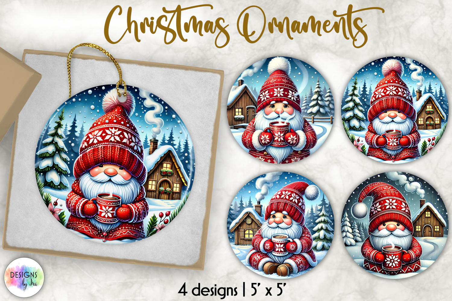 Adorable Christmas ornament designs featuring festive round designs with cute gnomes, Christmas trees, snowmen, lights, and winter scenes. Perfect for sublimation, ornament making, gift tags, stickers, and holiday crafts. High-quality 5x5 inch PNG files with transparent backgrounds included.