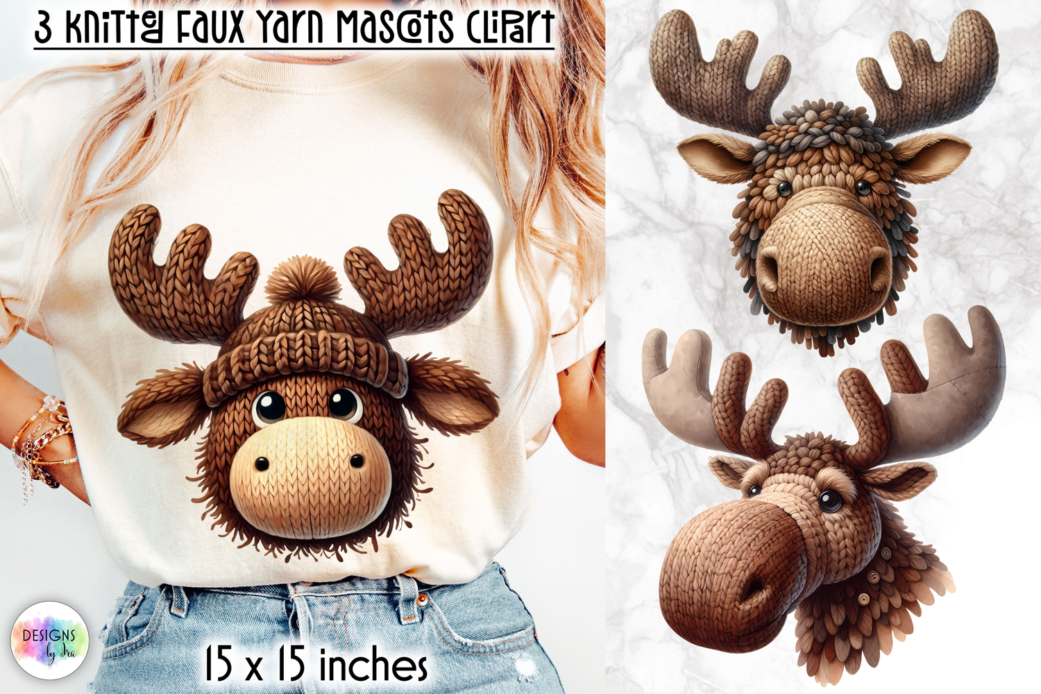 Knitted Moose Clipart, Faux Yarn Plush Moose Mascot Print