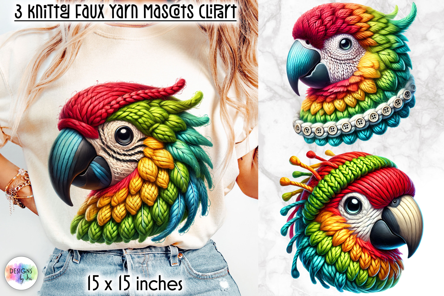 Knitted Parrot Clipart, Faux Yarn Plush Exotic Bird Mascot