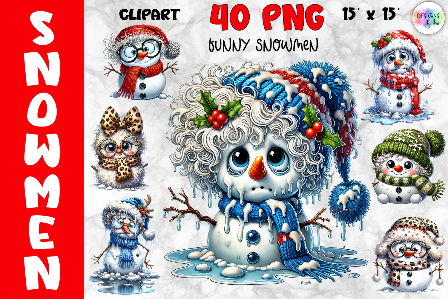 Bring joy and humor to your holiday designs with this Funny Snowmen Clipart Bundle featuring 40 high-quality PNG illustrations (15x15 inches, 300 DPI, transparent background).