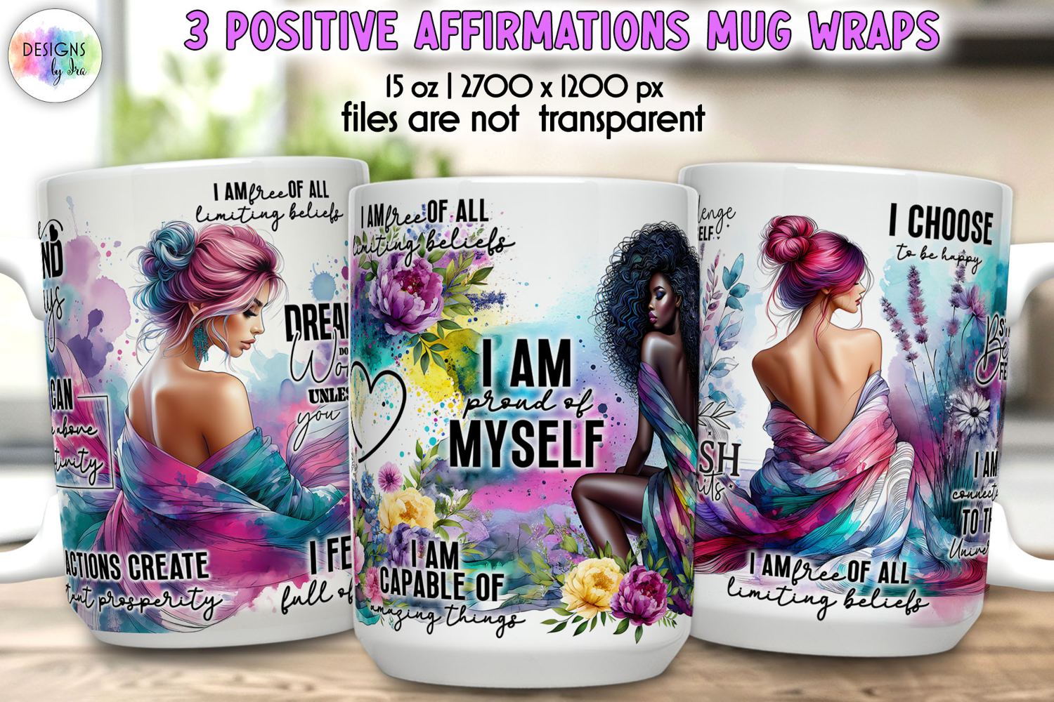 • 3 positive affirmation mug wrap designs