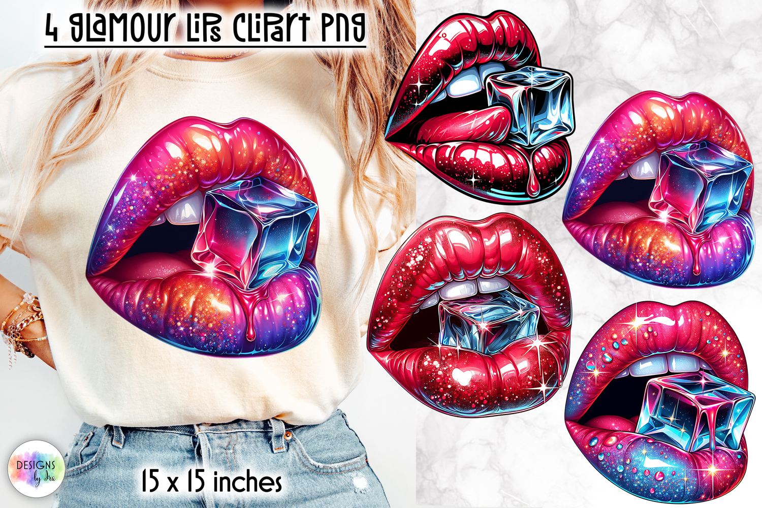 Similar Design Products to Ice Cube Glam Lips Clipart PNG, Glitter Lips with Ice Print