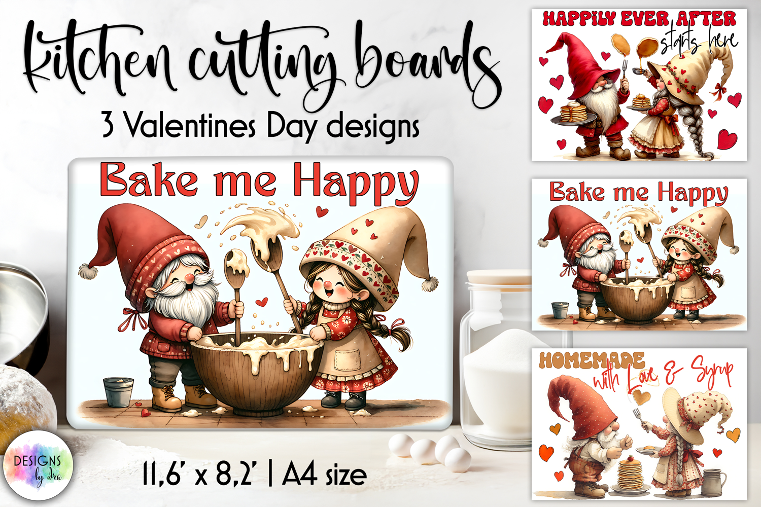 Valentine Gnome Kitchen Cutting Board Designs, Love Baking