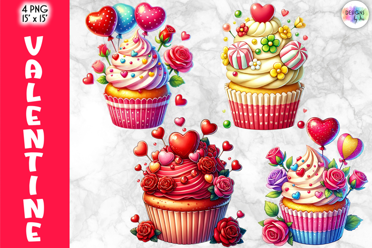 A charming cupcake collection designed to add sweetness, color, and Valentine-themed flair to any design project.