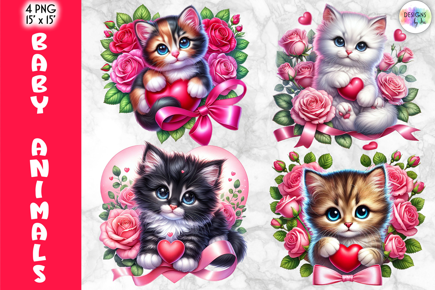 Similar Design Products to Valentine Baby Animals with Hearts Clipart, Cute Kitten PNG