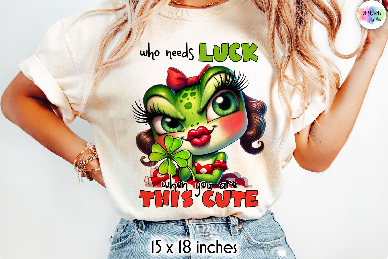 Lucky Clover Cute Frog Frog Illustration Who Needs Luck St Patrick Design Cartoon Frog Girly Frog Frog Girl St Patrick Cute Irish Cute
