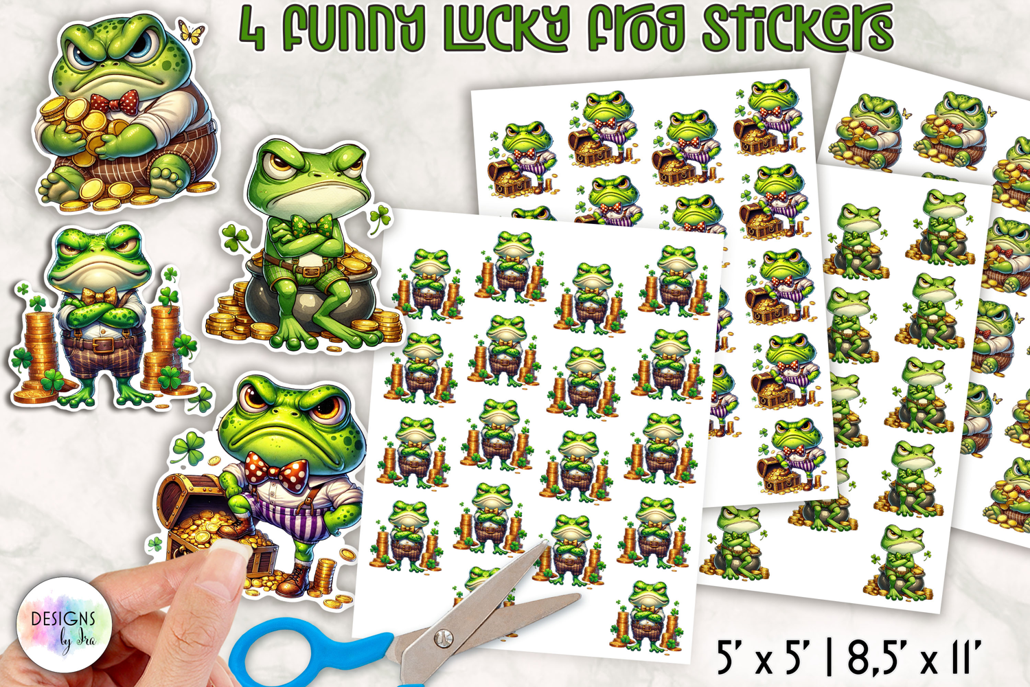 The illustrations are bold, colorful, and full of character, designed in a whimsical cartoon style that stands out on stickers, planners, scrapbooks, party decorations, and seasonal crafts. Each frog has a unique pose and attitude, making the designs lively and eye-catching.