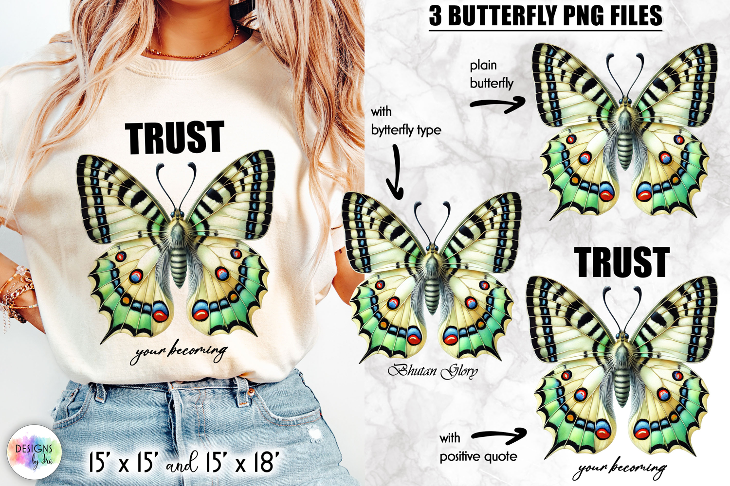 A refined collection of realistic butterfly illustrations featuring beautifully detailed wing patterns and soft natural coloring. Each butterfly design is provided in three variations: plain butterfly, butterfly with species name, and butterfly paired with an uplifting quote — giving you flexibility for multiple creative uses.