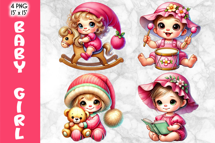 Similar Design Products to Cute Nursery Clipart, Baby Girl Gnome PNG, Baby Shower Art