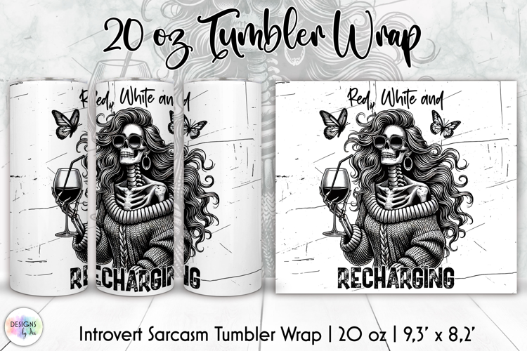 Sublimation Design Sarcastic Quote Wine Lover Gift Funny Tumbler Tumbler Wrap 20oz Skinny Gothic Png Introvert Humor Skeleton Art Black White Art