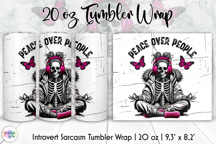 Sarcastic Quote Sublimation Png Introvert Gift 20oz Skinny Wrap Tumbler Wrap Png Yoga Aesthetic Gothic Tumbler Design Pink Headphones Peace Over People Meditation Skeleton