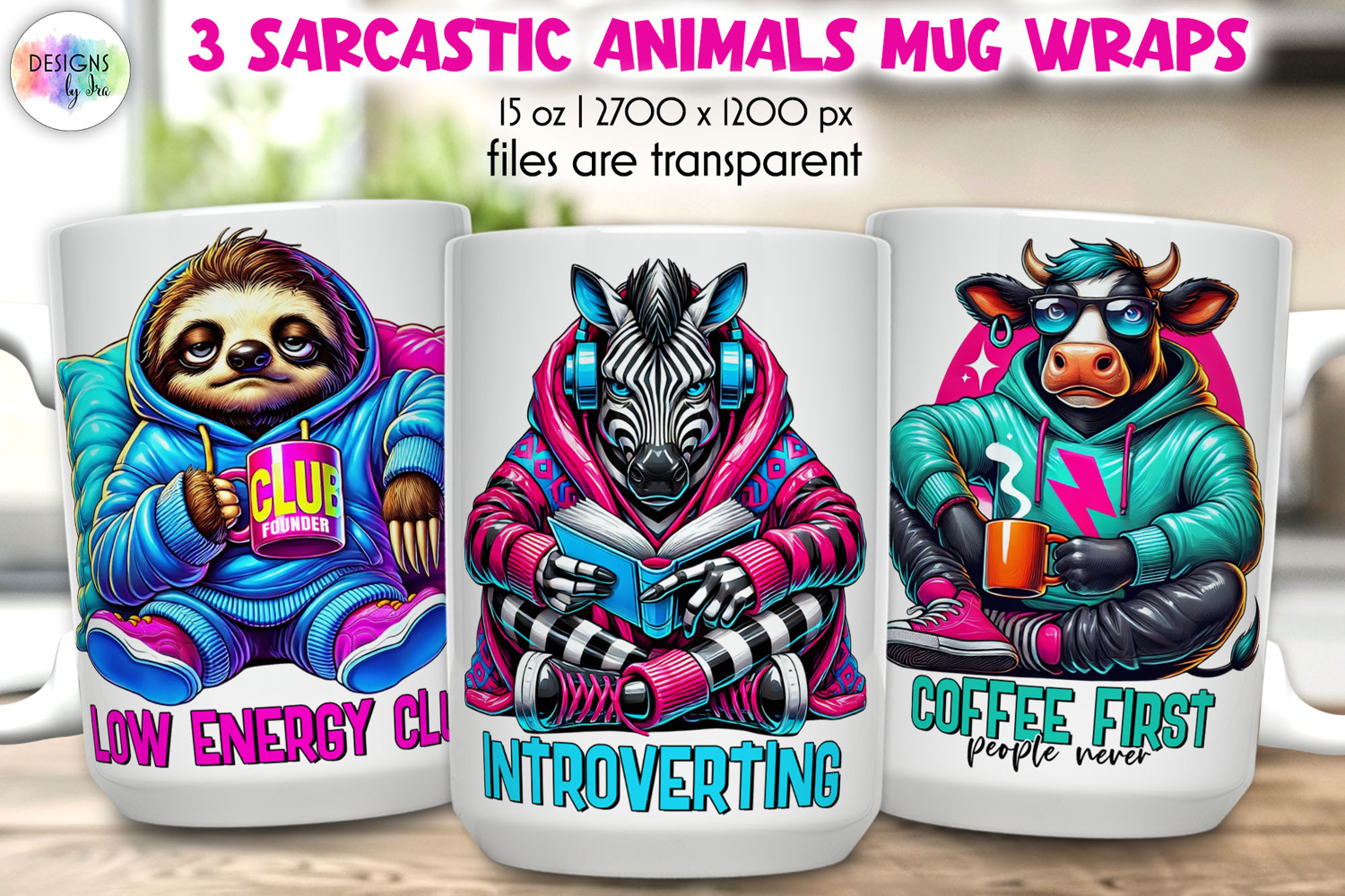 Bring bold humor to your drinkware creations with these vibrant sarcastic animal mug wraps!