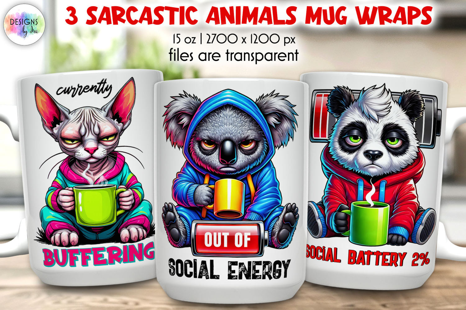 Bring bold humor to your drinkware creations with these vibrant sarcastic animal mug wraps!
