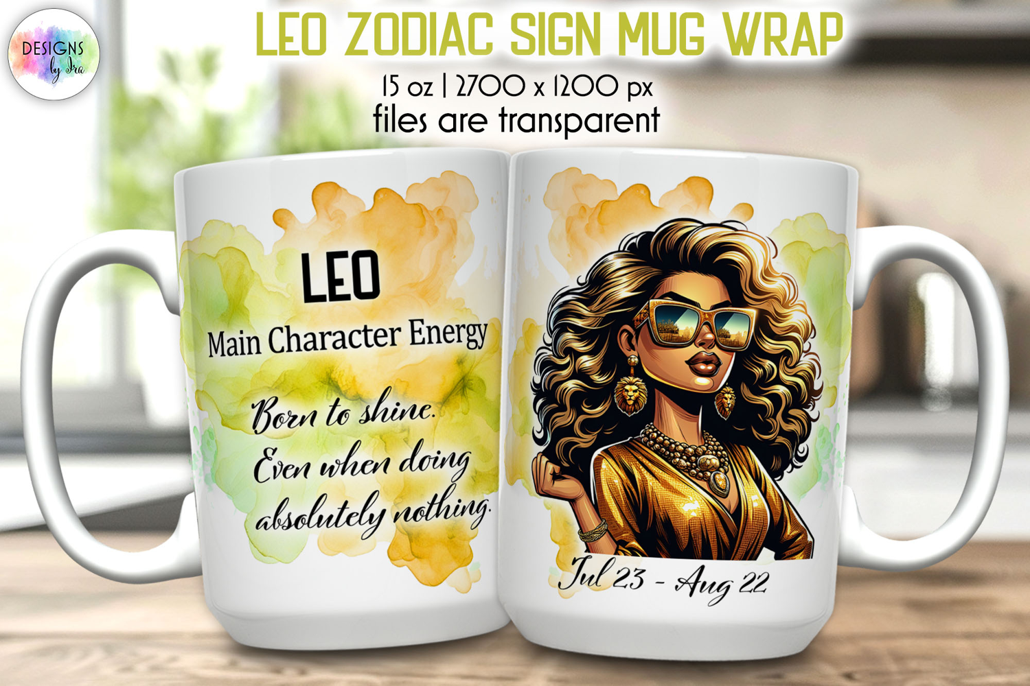 Zodiac Sign Mug Wrap PNG, Leo 15oz Sublimation Design