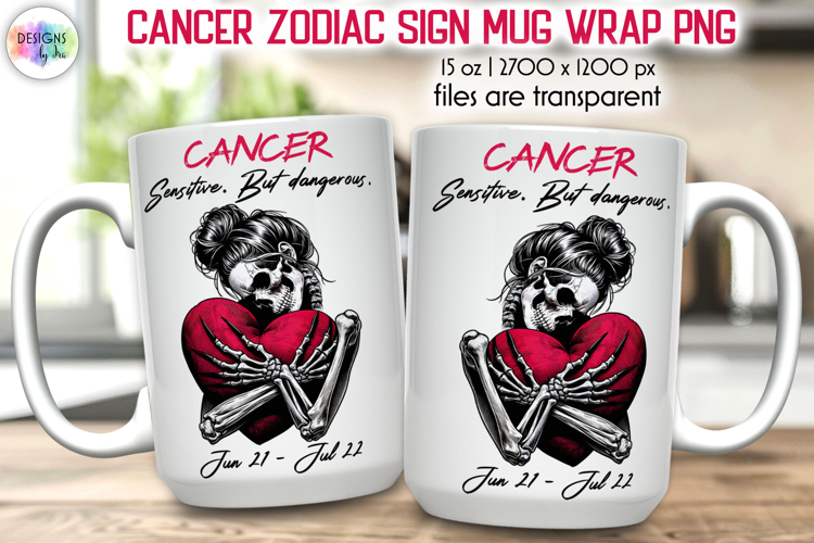 Similar Design Products to Snarky Skeleton Zodiac Sign Mug Wrap, Cancer Zodiac Mug