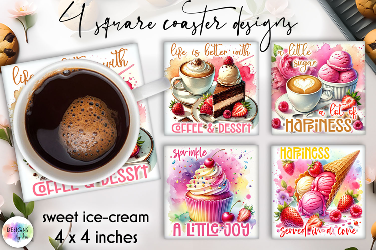 Sweet Ice Cream & Coffee Coasters, Printable Square Coaster