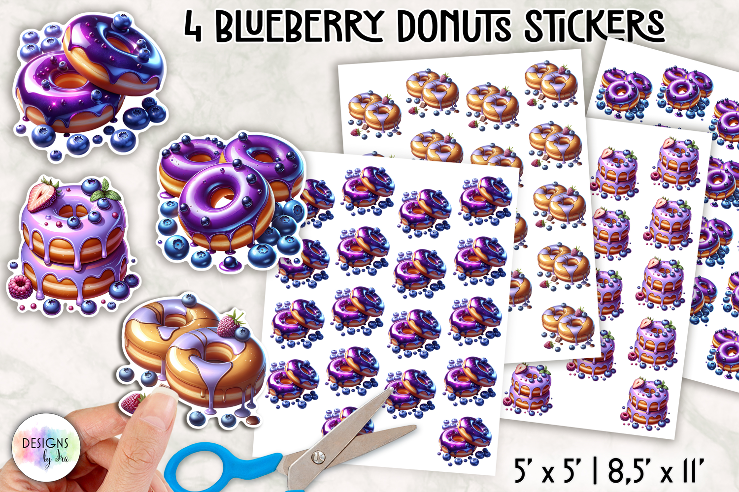 Glossy and vibrant blueberry donut illustrations with rich purple icing and juicy berry details. Perfect for printable stickers, planners, scrapbooking, journaling, and DIY crafts. These high-resolution designs feature smooth gradients and a modern dessert aesthetic, ideal for sweet-themed projects.