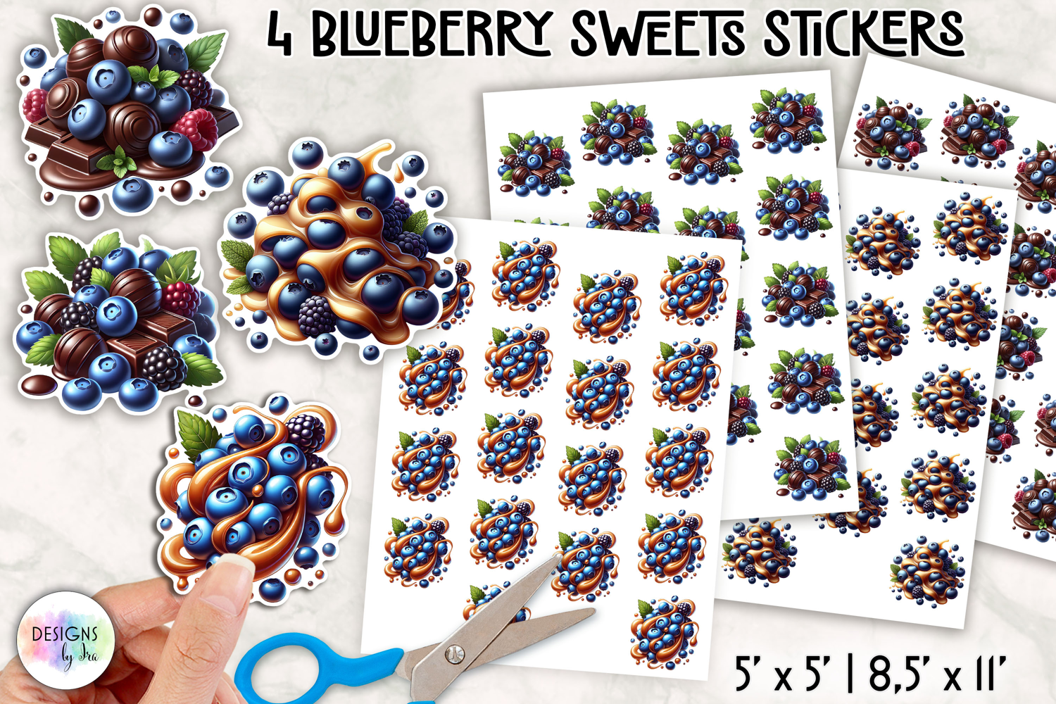 Blueberry Chocolate Sweets Stickers, Caramel Berry Dessert example image 1