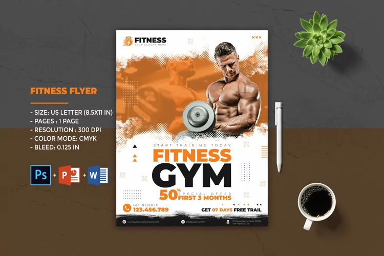 Fitness Flyer Template | Fitness Club Flyer Template | Gym Flyer Template | MS Word and Photoshop Template