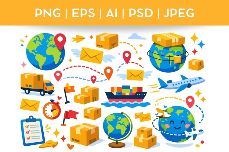 Worldwide Delivery Doodle| Vector & PNG Illustration